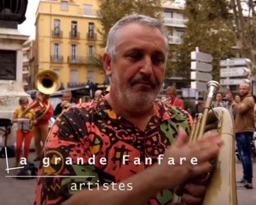 Curieuse de rencontres et de frottements à toutes les cultures, libre et sans bagage, spontanée, espiègle parait-il, enjouée toujours… la Grande Fanfare se balade le long des sentes escarpées, dans les ruelles intimes des villages de Provence et d’Occitanie, dans le cœur des cités mais sait aussi se fondre dans les rues enflammées de Valencia en Espagne, les quartiers en fête au Sénégal, dans l’Atlas marocain, au Festival du Désert à Tombouctou et sur les rives du Niger, emportant avec elle un public ébahi dans une transe collective autour d’un chorus de trombone, de saxophone ou de tuba porté à l’incandescence…
