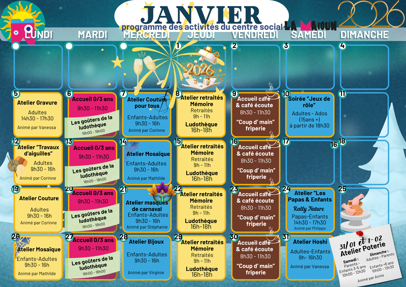 - Samedi 24 janvier, atelier « papas/enfants », programme à suivre, atelier animé par Philippe