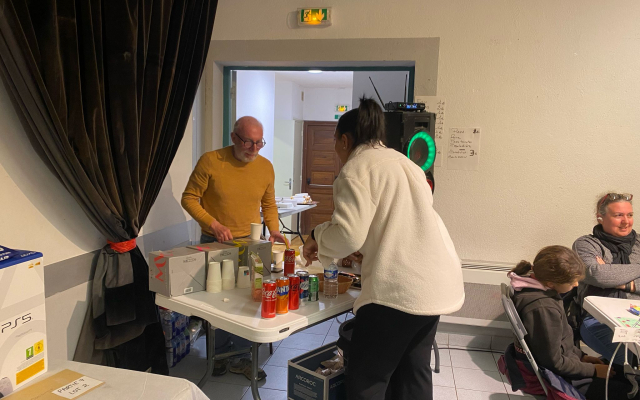 Durant les ateliers, tout le monde participe à la logistique de la journée, un repas partagé tous ensemble est proposé le midi, où chacun peut amener à boire ou à manger.