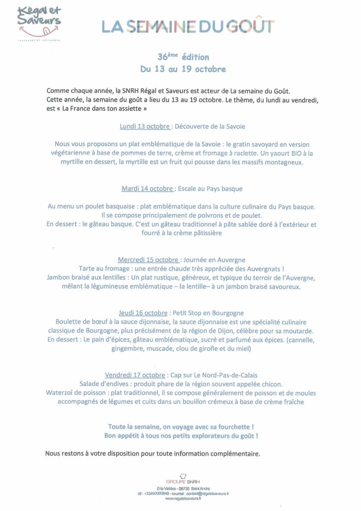 À Coaraze, les repas, livrés par la SNRH Régal et Saveurs, ont suivi le thème :